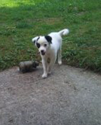 auch schon im Garten herum. Sie ist sehr aufgeweckt und lange Spaziergänge hat sie sehr gern. "Sitz", "Platz", "Hier" macht