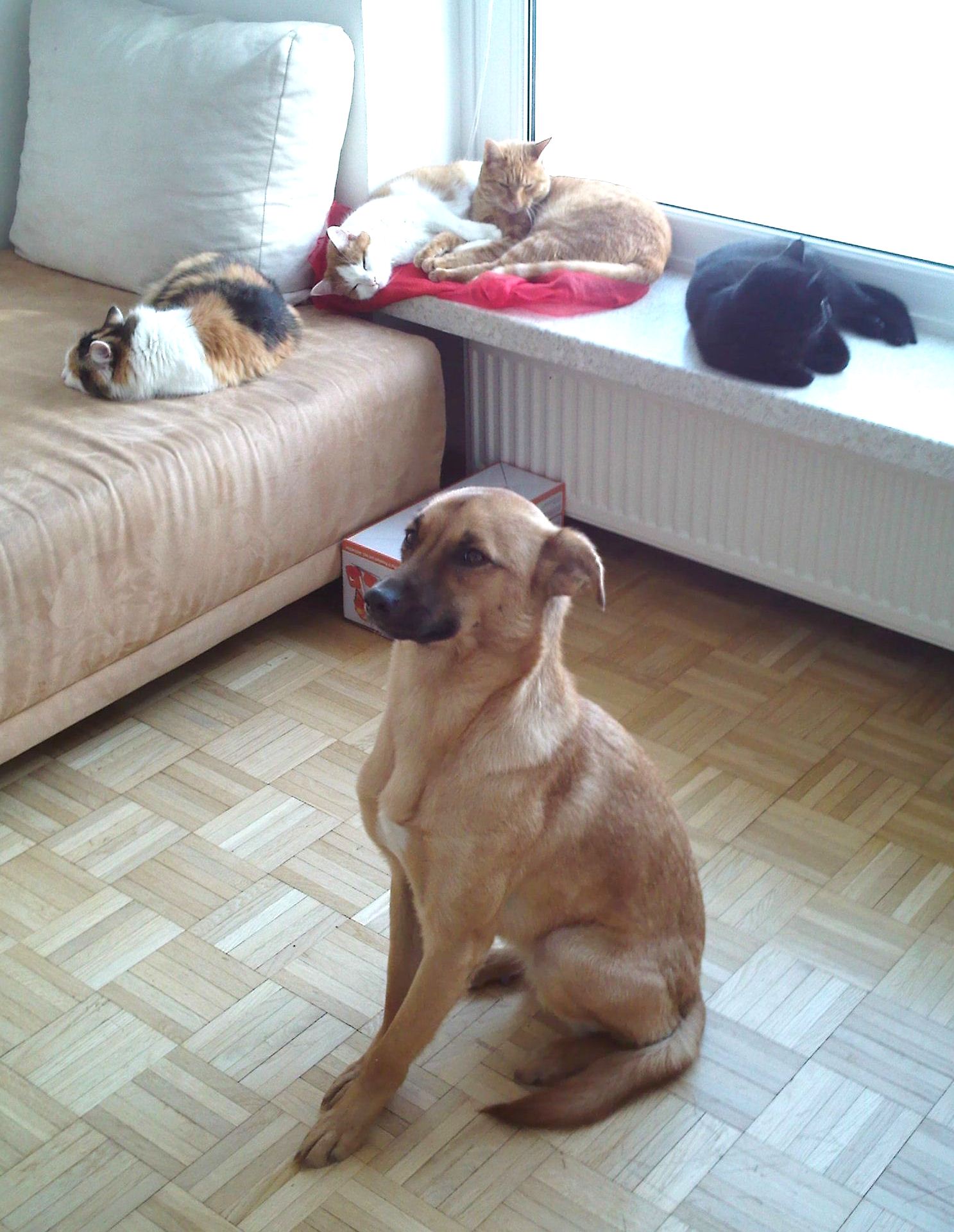 unsere Rasselbande faulenzt gemeinsam im Wohnzimmer