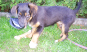 Sie ist ein äußerst aufgewecktes kleines Mädchen und lernt täglich etwas Neues dazu. Sie untersucht alles, was ihr unter die Nase kommt und hat sich mit den Nachbarhunden schon bekannt gemacht.