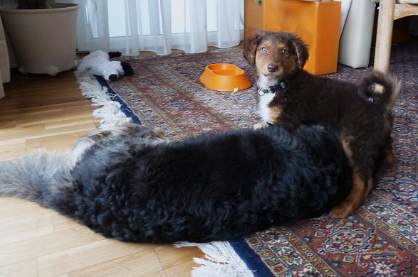 wir haben viel Freude mit Leo, er entwickelt sich bestens, er schläft nachts bereits durch, ohne raus zu müssen, spielt gerne mit Menschen und Hundeadoptivmutter Mira.