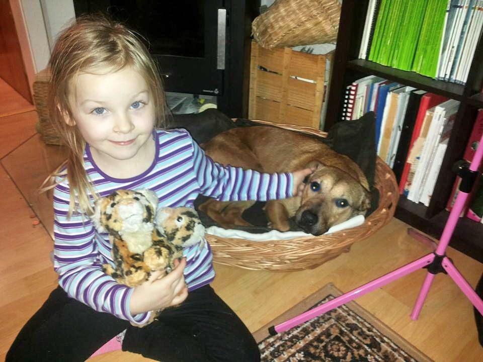 Danke für die tollen Bilder! Lexy heißt sie jetzt und macht einen überglücklichen Eindruck. Paga (unser anderer Hund) versteht sich wunderbar mit ihr! Sie spielen so schön miteinander. Sie ist total umgänglich und hat in diesen ersten 2 Tagen schon sehr viel gelernt. Im Gegensatz zu Paga ist sie sehr nähe- und kuschelbedürftig, was meine Tochter seeeeeeehr freut! Das einzige, was uns noch sehr plagt ist ihr extremer Durchfall. Aber morgen haben wir einen Termin beim Tierarzt und dieser wird uns hoffentlich weiterhelfen. Lexy ist aber so brav und geht nachts in die Dusche zum Erleichtern.