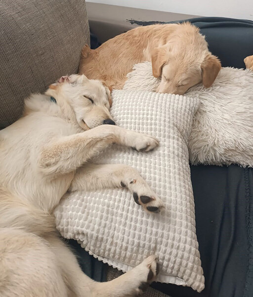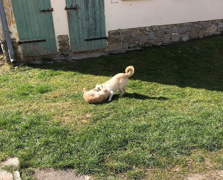 Sie toben durchs Haus, nehmen dem anderen die Spielsachen weg und buddeln natürlich auch gemeinsam im Garten 🤣. Aber was soll's, das Hundeleben ist leider zu kurz, sie sollen glücklich sein und die Welt entdecken 💓