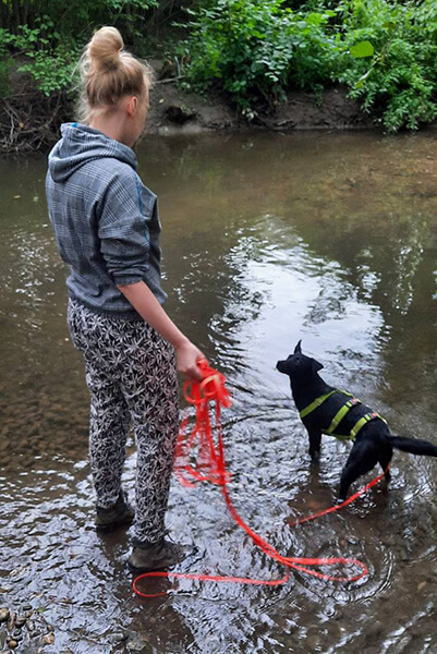 Lila hat sich als richtige Athletin herausgestellt. Seit sie frei laufen darf, entdeckt sie die Welt im Laufschritt. Klettert und springt überall rauf und runter, schlägt vor Freude richtige Purzelbäume in der Wiese, und wälzt sich in allem was besonders "gut" riecht. Es macht mir einen riesen Spaß mit ihr gemeinsam auf Entdeckungstour zu gehen.