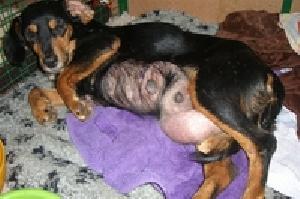 Lilos Welpen wurden eingeschläfert, daduch bekam sie einen Milchstau und die Zitzen haben sich entzunden. Sie wiegt 9.4 kg. Sie wurde operiert - ihr Zustand hat sich verbessert. Nun fand auch Lilo - nun Leni, endlich ein liebevolles zu Hause.