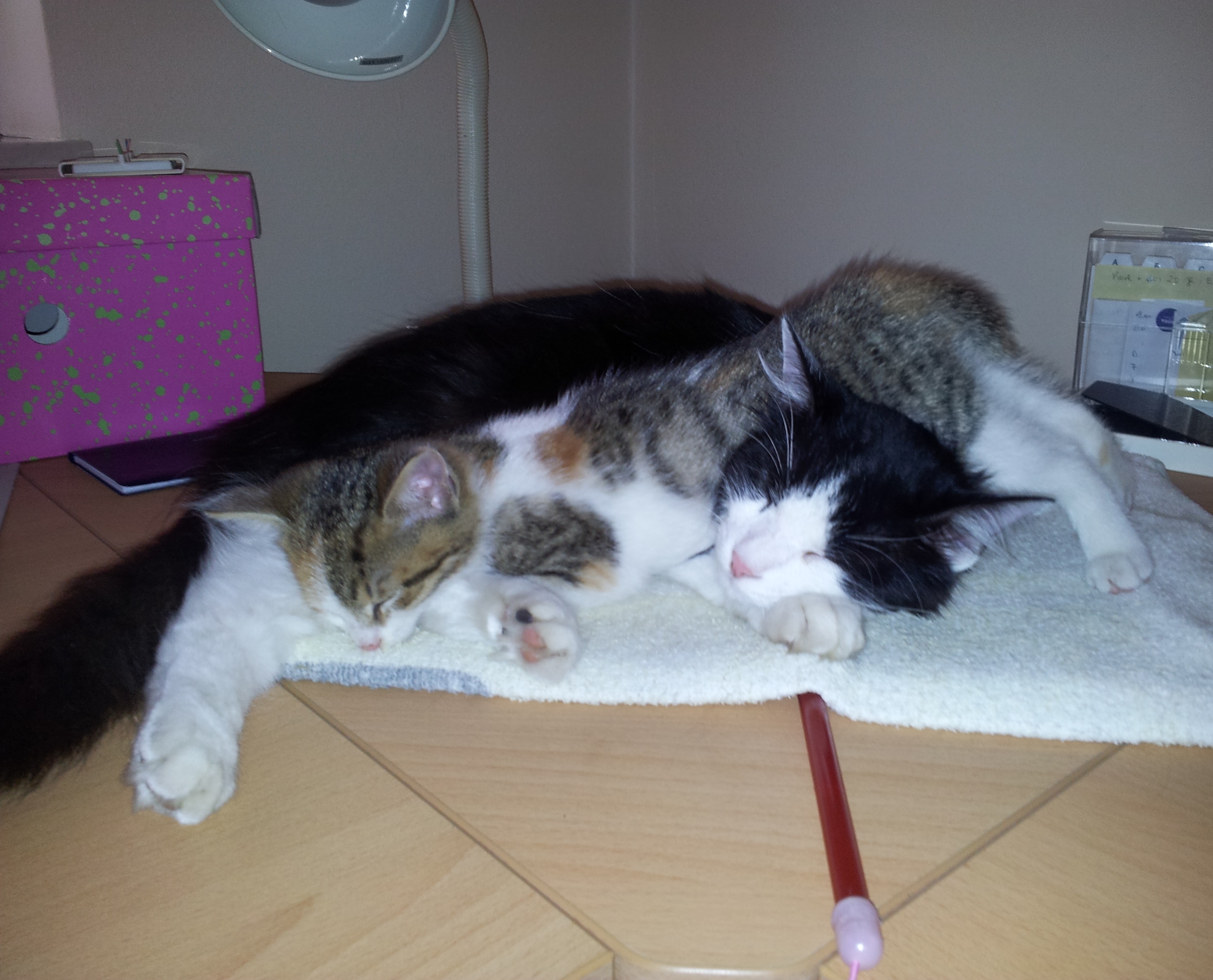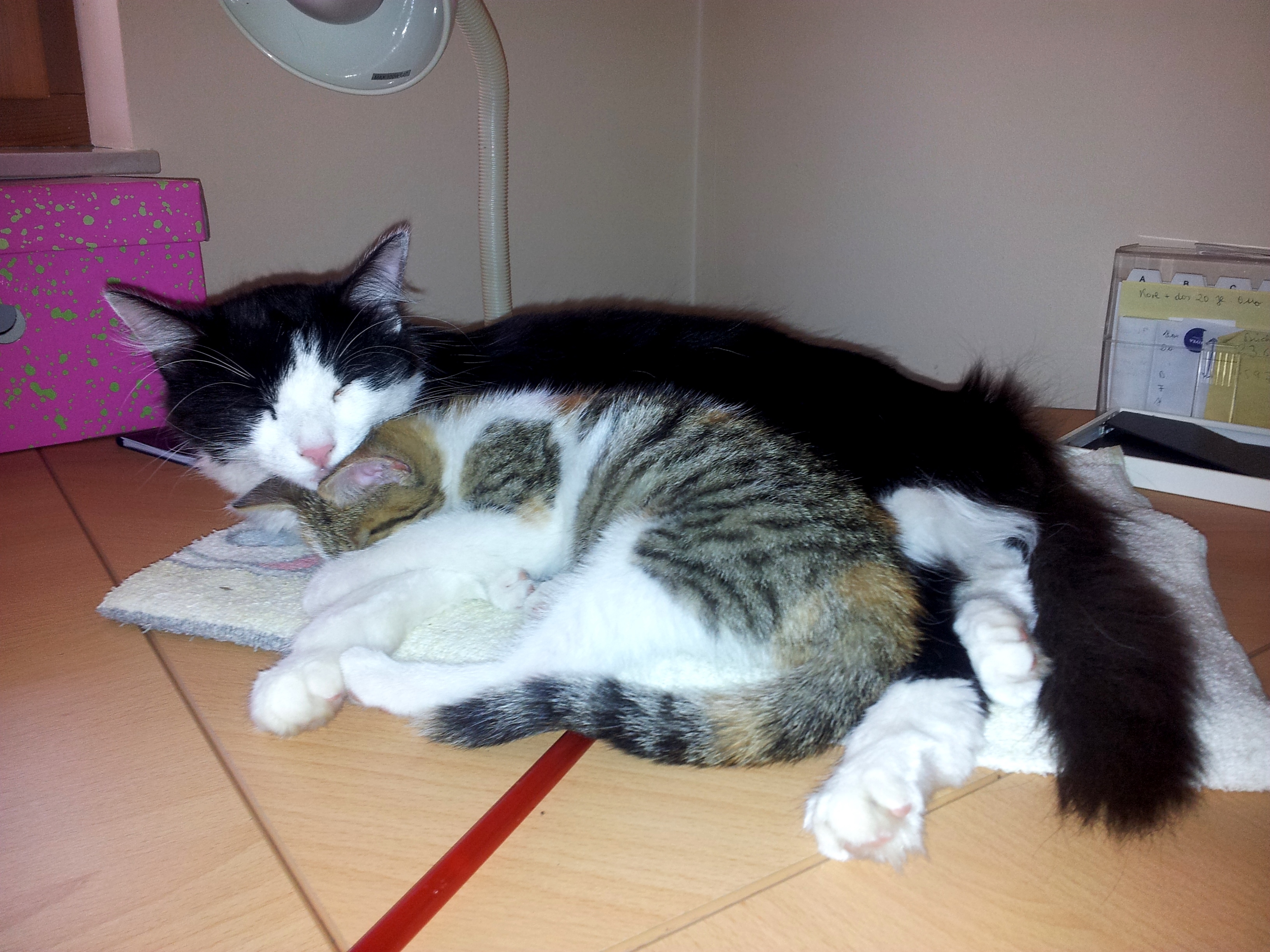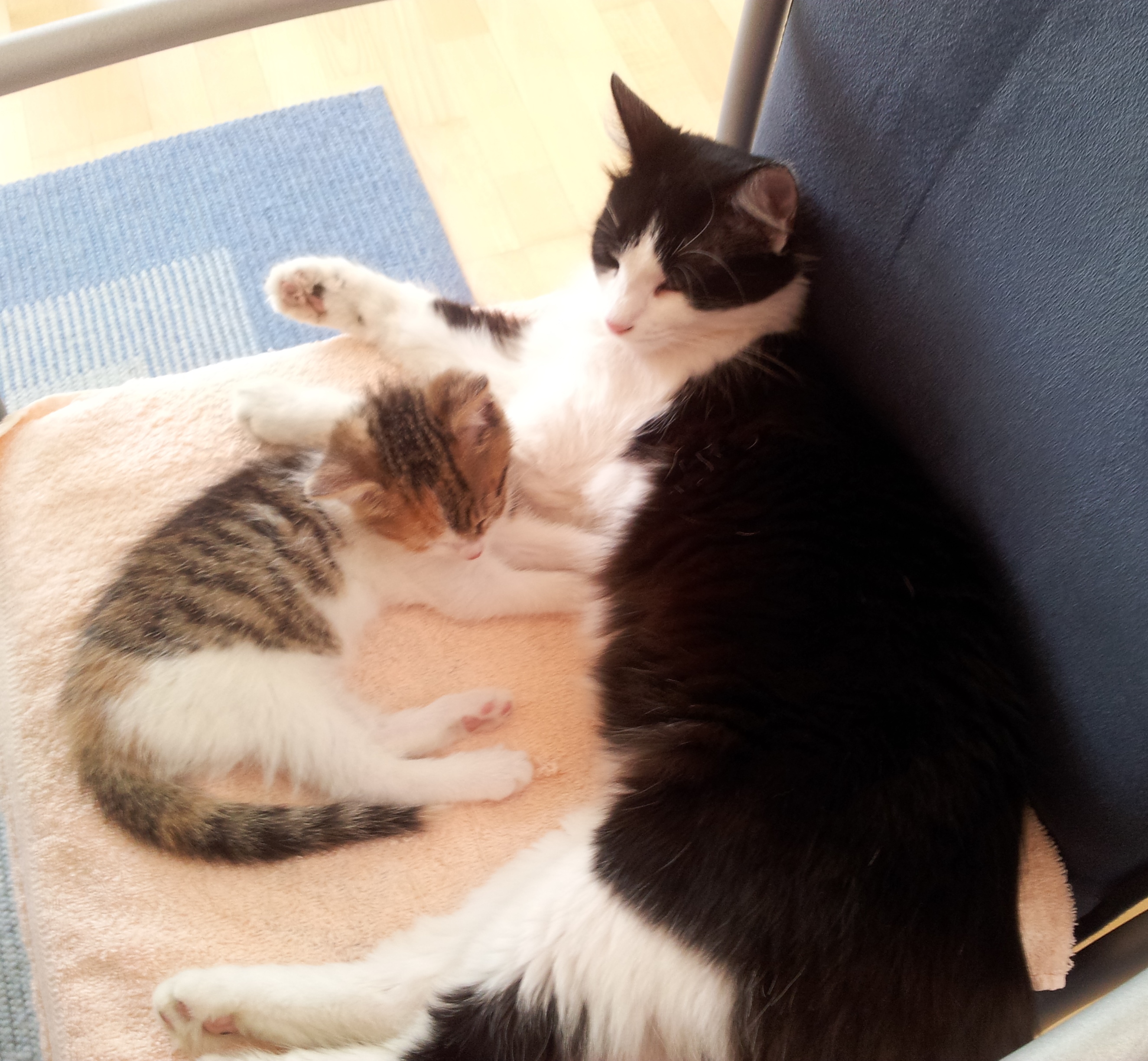 Aus Alice ist eine schöne und sehr liebe Katze geworden. Sie ist auch „Pflegemutter“ geworden und ich glaube, dass sie sehr glücklich ist – wie sie den beigefügten Bildern entnehmen können.