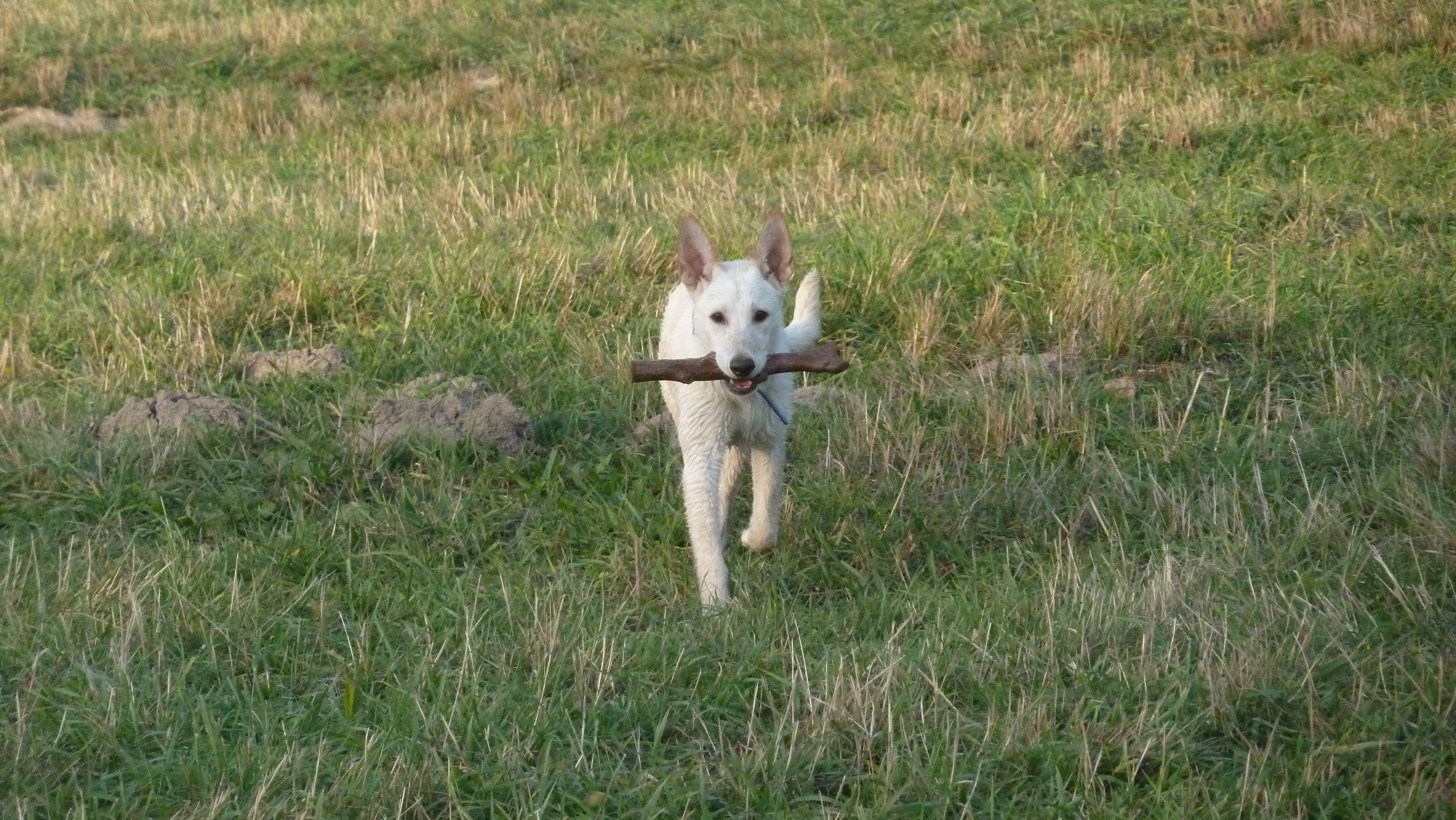 Ich kann auch schon ein paar Kommandos wie Sitz, Platz, Bleib, gib Pfote, mach Männchen und wenn ich gerufen werde komme ich fast immer sofort. Manchmal bin ich noch ein wenig ungeduldig vor allem wenn ich etwas haben möchte und es fällt mir ab und zu schwer mich auf Aufgaben zu konzentrieren aber mein Rudelführer beweist viel Geduld mit mir und ist mir auch nicht böse wenn Ichs mal nicht schaffe.
