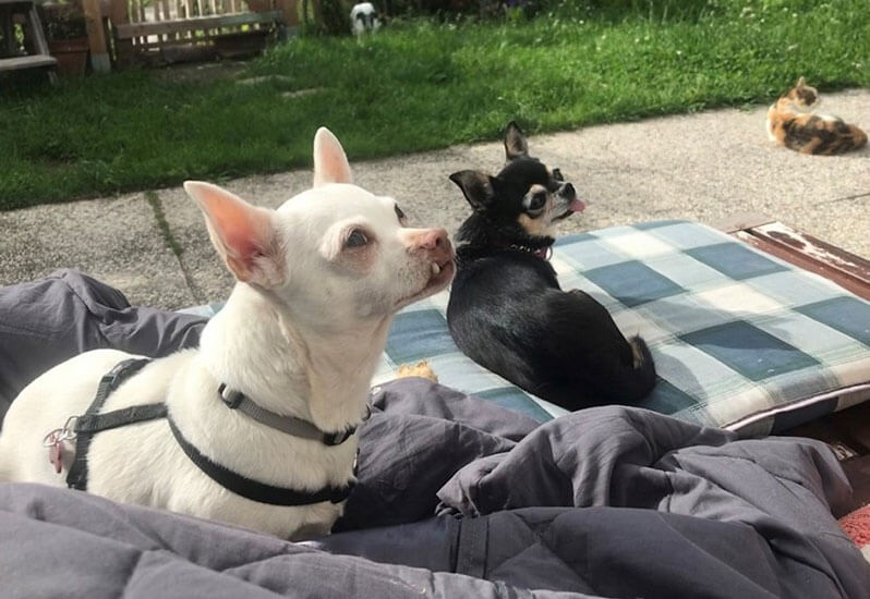 Wenn Frauchen arbeitet, kommen wir zum Pflegefrauchen - die hab ich auch ganz doll lieb gewonnen. Da bekomme ich oft extra Leckerlis und es gibt einen großen Garten den ich bewachen darf🌻.