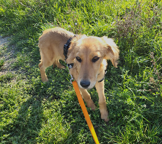 Mittlerweile besuche ich auch schon die Junghundeschule. Naja, was soll ich sagen, Vorzeigeschülerin bin ich noch nicht. Aber ganz ehrlich, es ist auch ein bisschen fad dazwischen. Ruhig sitzen, auf Kommando „Sitz/Platz/Bleib“ und vieles mehr, da ist es doch viel lustiger sich mit dem Nachbarn zu unterhalten oder mal das Gelände zu erkunden. Ich habe aber schnell verstanden, dass das nicht so gut ankommt. Aber für ein Leckerli bin ich doch immer zu haben. Frauchen und Herrchen meinen, dass ich das schon ganz toll mache und sehr gelehrig bin. Bin schon ein wenig stolz auf mich!