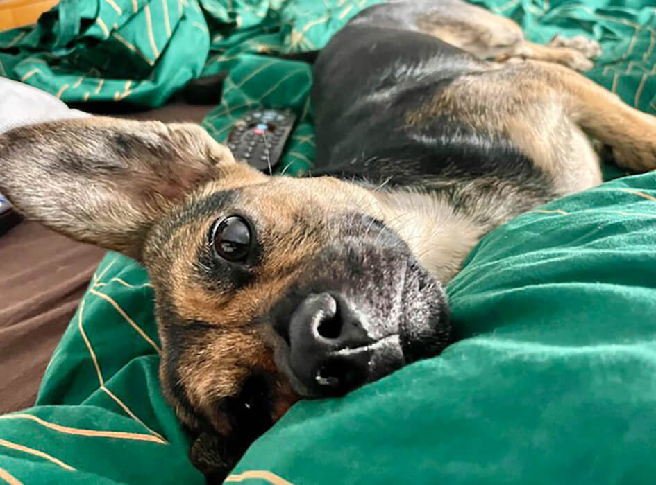 Nachts möchte sie am liebsten zwischen uns liegen und gekuschelt werden!