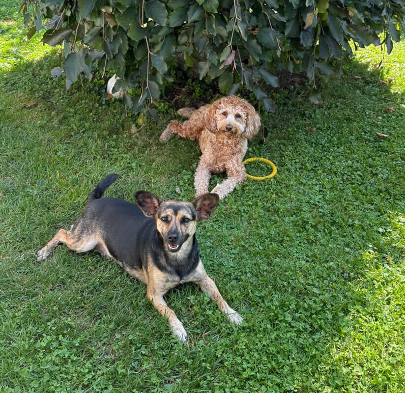 Sie hat schon ein paar Freunde gefunden, mit denen wir immer wieder spazieren gehen oder einfach im Garten spielen.
