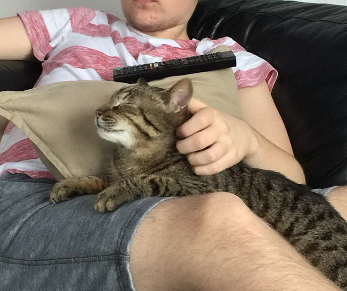 Tobias heißt bei uns Lucky, mein Sohn findet, dass er uns Glück bringt und wir ihm. Er hat sich super eingelebt, ist immer in unserer Nähe, plaudert ganz viel mit uns und genießt seine Streicheleinheiten.