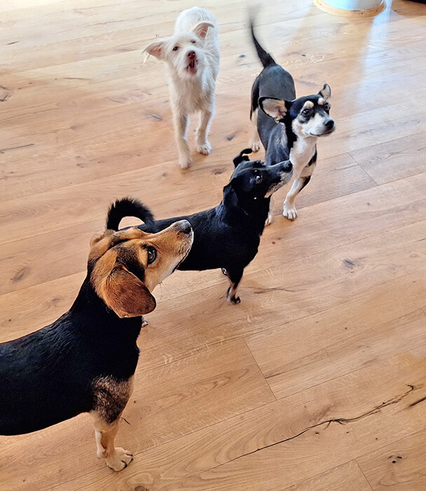 Liebe Frau Böhm, Anbei Fotos von unseren süßen Hunden. Die Neuen haben sich gut eingelebt.