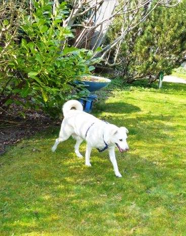 Luna rollt voller Wonne immer gleich einmal drei Runden durch ihren neuen Garten - es ist einfach schön zu sehen, wie sehr die Hunde ihr neues Zuhause genießen. Ich hoffe, im Juli ist alles soweit fertig, dass wir ganz nach Hietzing übersiedelt sind.