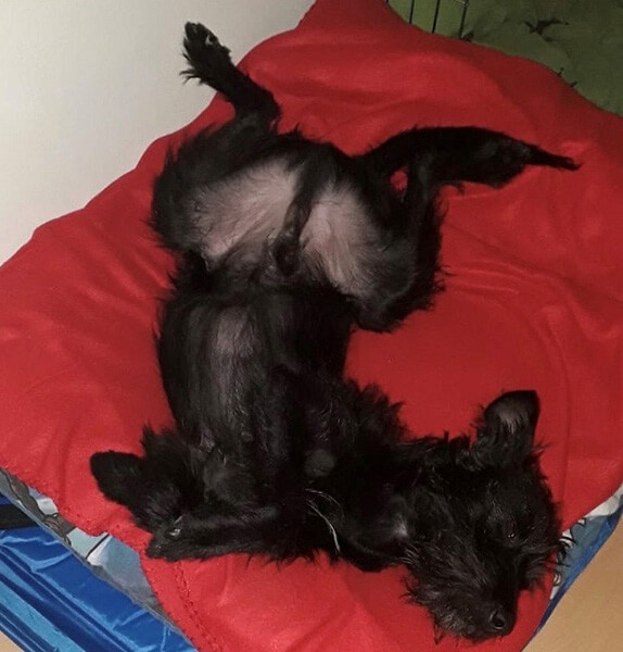 Er hat sich soooo toll eingelebt nach nur kurzen 5 Wochen. Er beherrscht schon „Sitz“, „Platz“ „Geh auf deine Decke“ und „Bleib“ geht auch schon ein wenig. Becherspiele liegen ihm und Suchspiele ist er am Erlernen.