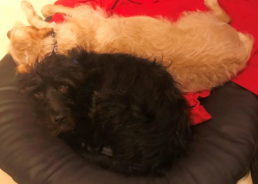 Dank Paula an der er sich orientiert, hat er sich in Windeseile an das Alleinbleiben gewöhnt. Kein Bellen, kein ungezogen sein, besser kann ich es mir nicht wünschen.