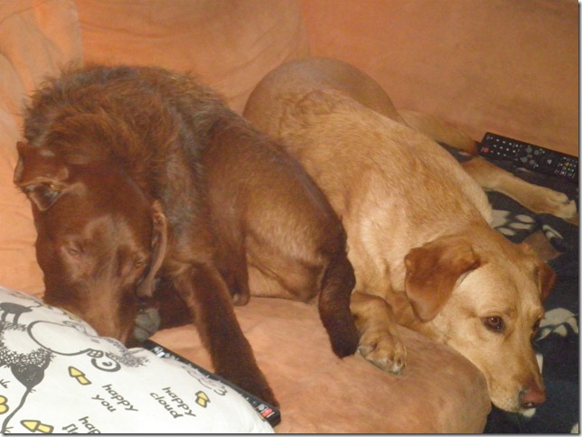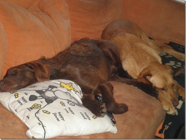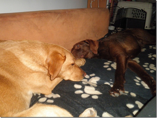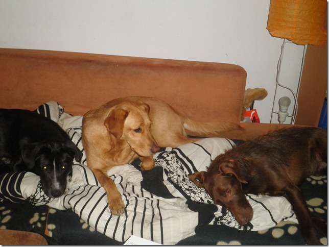 Mack hat sich inzwischen sehr gut bei uns eingelebt. Erni hat ihn sofort akzeptiert und auch mit dem jungen Rüden kommt er im Großen und Ganzen gut klar, wobei er ihn manchmal (zu Recht) maßregelt, aber das ist alles noch im Rahmen. Auch den Katzen gegenüber verhält er sich inzwischen schon viel netter. Mit anderen Hunden spielt er eher selten, dennoch schätzt er den Kontakt mit ihnen und zeigt sich auch interessiert an neuen Hundebekanntschaften. Mack ist ein sehr lieber, anhänglicher Hund. Draußen gehorcht er sehr gut und genießt es nun, mit Erni und mir regelmäßig joggen zu gehen. Bisher zeigt er keine ernsthaften jagdlichen Ambitionen, wobei wir in letzter Zeit jedoch selten Wild begegnet sind.