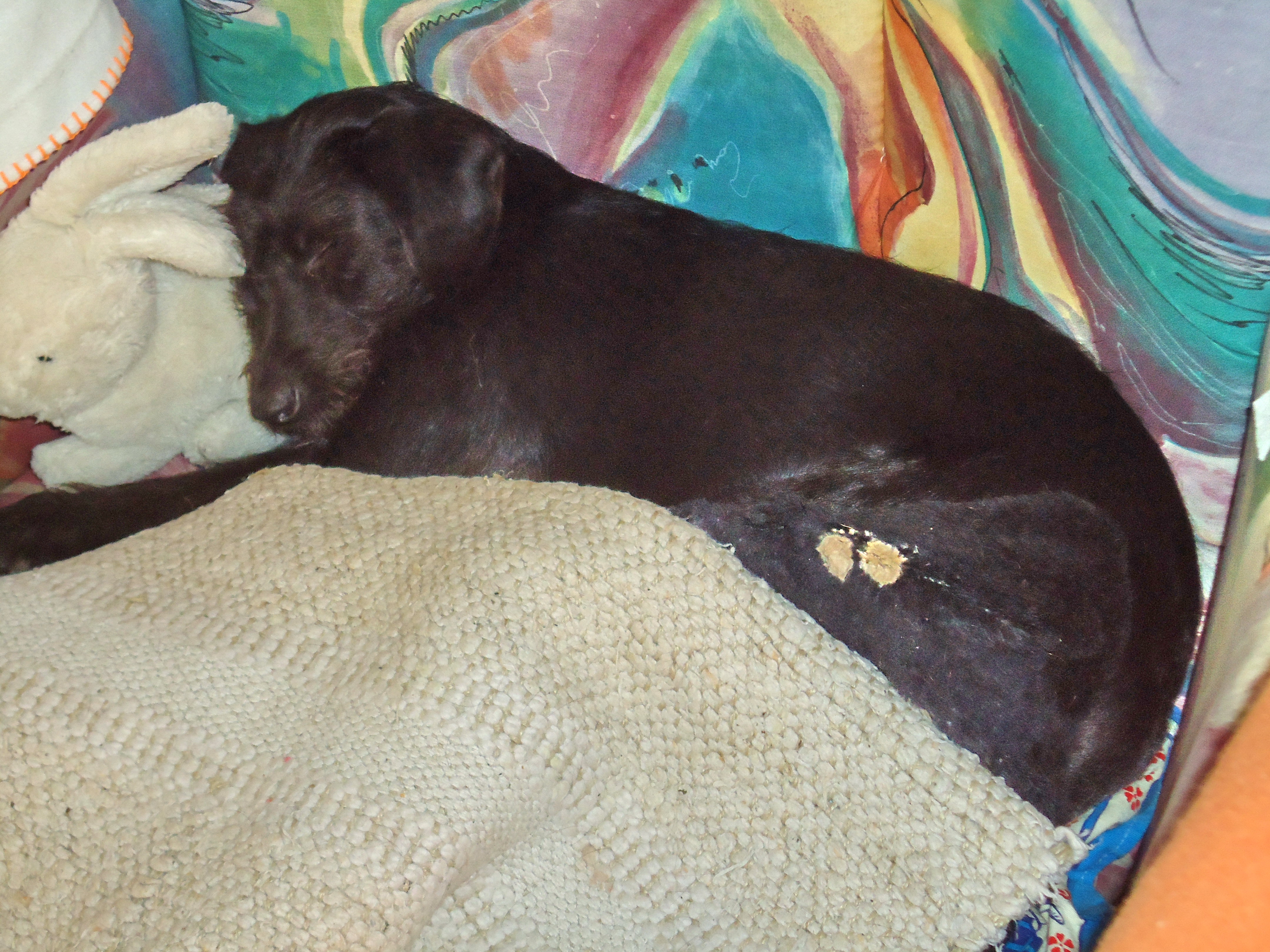 Kurz vor dem Wochenende ist sie zum 1.x alleine in den Garten gegangen, vorher machte sie keinen Schritt alleine raus. Seit dem Wochenende spielt sie mit mir schon Tauziehen mit einem Tuch und wir balgen uns und spielen wie junge Hunde am Boden. Sie hat sehr großes Vertrauen zu mir, das merke ich auch beim Spazierengehen. Bei Angst vor Unbekannten vertraut sie mir und bleibt dicht bei mir. Macy hat sich ab dem ersten Tag im Wohnzimmer und im Schlafzimmer ihre Plätze gemerkt und hält sich ganz brav daran. Sie frisst gut, ebenso ist die Verdauung.