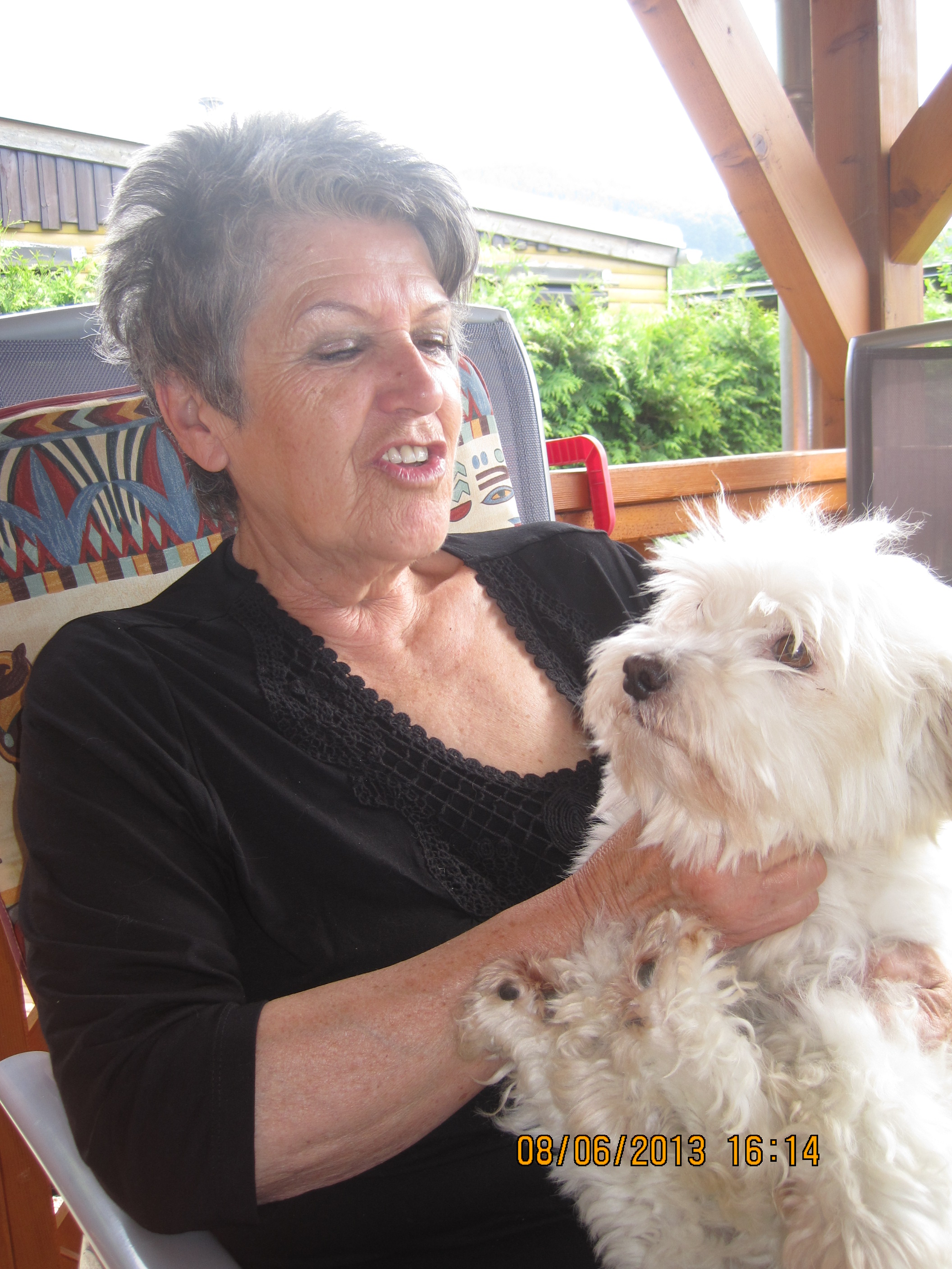 maggy taut schön langsam auf. war wohl eine riesige umstellung für sie. bei uns darf sie laufen, bei bedarf wird sie auf den schoß genommen und gestreichelt und sie genießt ihre freiheit. anfangs war sie am lieben in ihrem transportkorb, jetzt kuschelt sie mit lilli oder mit wem auch immer am hundeplatz. ihre zurückhaltung hat sie auch schon abgelegt und ist nicht mehr so unsicher. wir sind jetzt am grundkomandos lernen. als leckerli bevorzugt sie (wie auch alle andere) kleine karottenstücke. regen mag sie nicht, da verzichtet sie auf gassi-gehen. alles in allem sind wir sehr happy miteinander. habe es keine minute bereut, maggy (sowie lilli und auch maxi) aufgenommen zu haben.