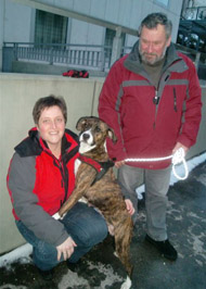 Ich glaube sie fühlt sich sehr wohl bei uns. Sie läuft und hüpft mit Ronja im Schnee durch den Garten, spielt ganz gerne mit ihrem Quietschteddybären und hält nach einer gemütlichen Schmusestunde ein Schläfchen im Körbchen oder auf der warmen Ofenbank.Die Tibi-Katze hat sie auch schon beschnuppert und auch das Pony hinter dem Zaun. Makra ist zu allen lieb und freundlich. Die Spaziergänge liebt sie sehr .Unsere Ronja (11 Jahre) ist nun auch wieder viel lustiger.Sie ist sehr stolz auf ihr großes " Baby" ! Wir sind sehr froh, dass wir Makra haben.