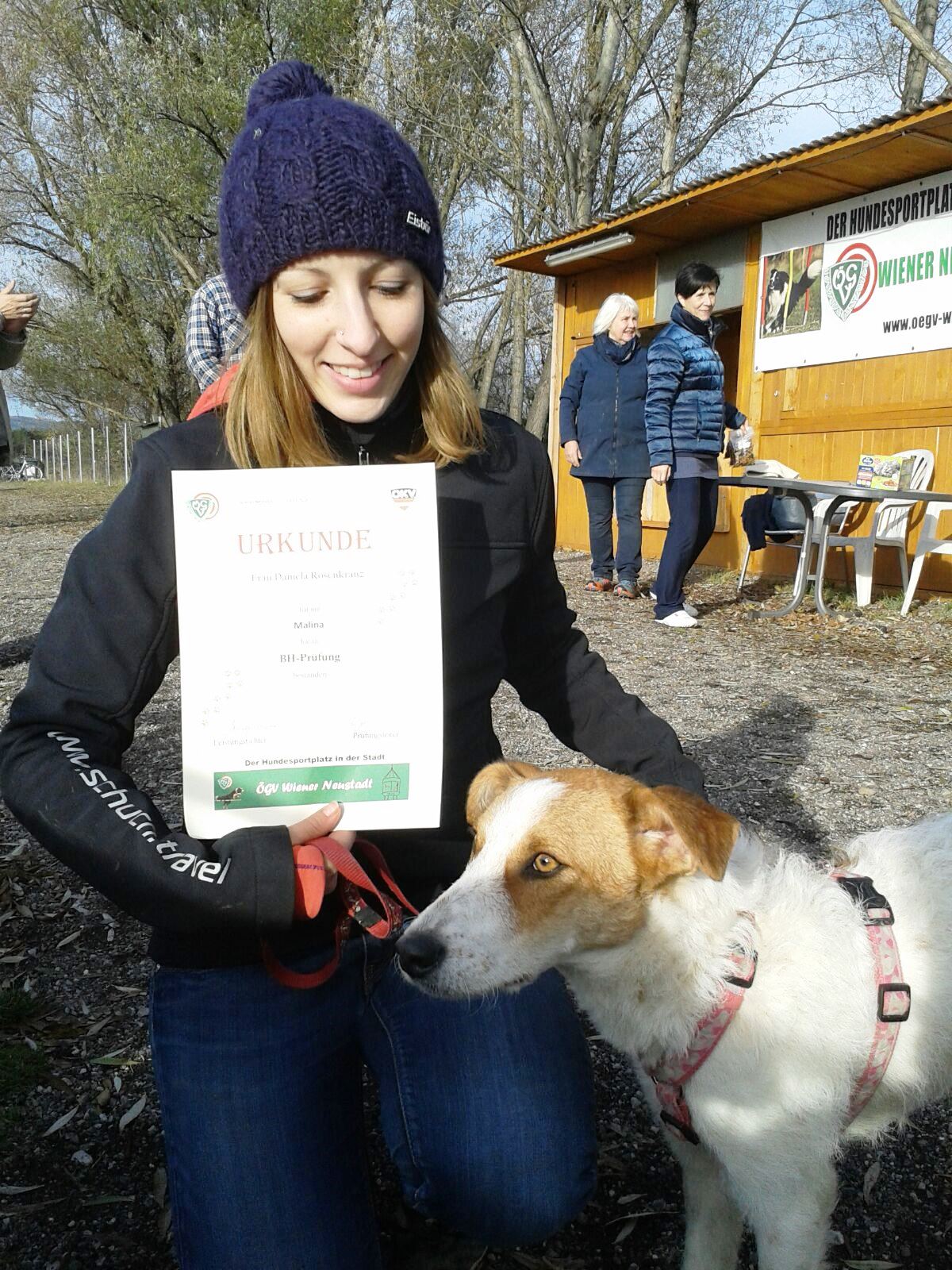 es freut mich voller Stolz verkünden zu dürfen, dass Malina und ich heute unsere BH-Prüfung und den Verkehrstest bestanden haben. Mein kleiner Wildfang war superbrav :-)