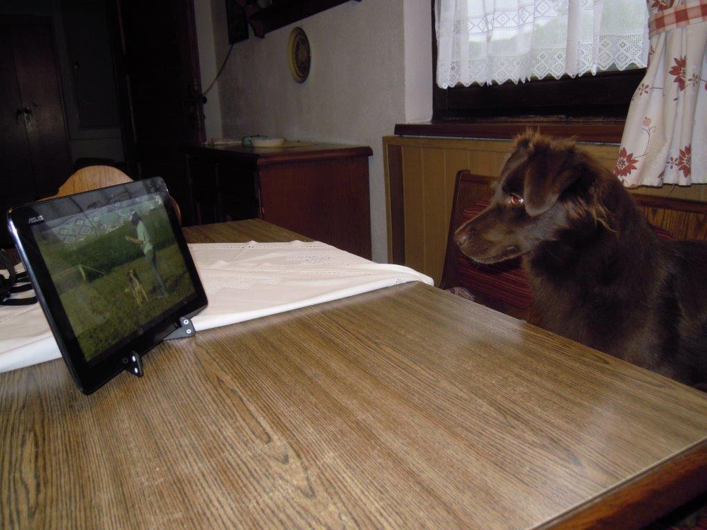 Ich bin es die Merla (jetzt Mara) - manchmal werde ich auch "Kaffeedackel" genannt! Wollt mich nur wieder einmal bei euch melden. Ich bin jetzt schon über ein Jahr bei meinem Frauchen. Ich bin ein sehr glücklicher Hund geworden. Frauchen sagt jetzt auch immer öfter, dass ich braaaav bin! Ich darf schon manchmal ohne Leine laufen und komme ganz brav wieder zurück, wenn Frauchen nur ein kleines Geräusch macht. Frauchen sagt, sie gibt mich sowieso nie wieder her. Aber trotzdem habe ich auch euch nicht vergessen. Denn bei euch war die erste Stelle an der es mir so gut als möglich ging. Besonders meine Trainerin, die immer auf den Filmen zu sehen ist hab ich nicht vergessen. Wenn meine Frauchen Filme anschaut und ich höre sie sprechen und die anderen Hunde bellen, geht meine Begrüßung schon los. Ich vergesse sogar meine guten Manieren und steige dann manchmal auf den Tisch, um besser sehen zu können. Wie ihr auf dem Foto sehen könnt.