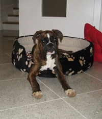 Die Hundedame unserer Eltern - Timba ist auch ein Boxer und hat sich bereits