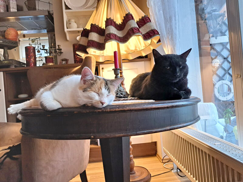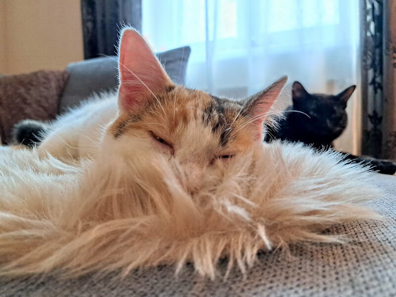 Die beiden Katzen haben sich mittlerweile gut aneinander gewöhnt. Manchmal ist es ein Katz und Mausspiel zwischen den beiden und manchmal sehr harmonisch. Unser 3er Gespann....gemeinsam auf der Couch.