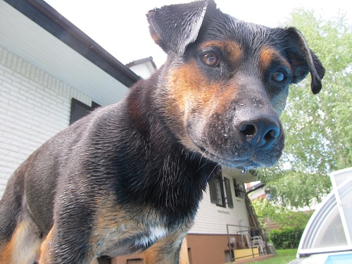 hier eine kurze Nachricht von Milli (ehemals Ludmilla) und Familie! Milli lebt jetzt schon zehn Monate bei uns und fühlt sich offenbar ziemlich wohl, gemessen am Kuschelfaktor - und sie ist immer noch für Überraschungen gut. Sie kann sich im Garten komplett unsichtbar machen und war dann doch nur zwei Meter neben uns versteckt; sie kann galoppieren wie ein Gepard und röhren wie ein Rehbock... Ein echter Mischling! Besonders freut uns, dass sie unser erster nicht wasserscheuer Hund ist, wie man auf den Bildern aus den letzten Monaten gut erkennen kann. :)
