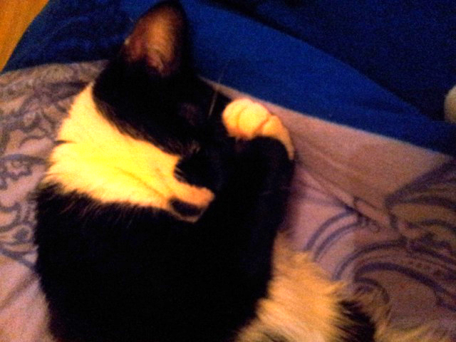 ich schicke Ihnen wieder mal ein ganz süßes Foto von Mira wie sie in meinen Bettchen schläft, die kleine Maus ist voller Lebensfreude, kommt gerne schmusen, fressen ist absolut ihr Ding, mauzt und hüpft fröhlich in der Wohnung herum, und mit meinen Kater versteht sie sich ausgezeichnet, die beiden sind das Liebespaar schlechthin :)