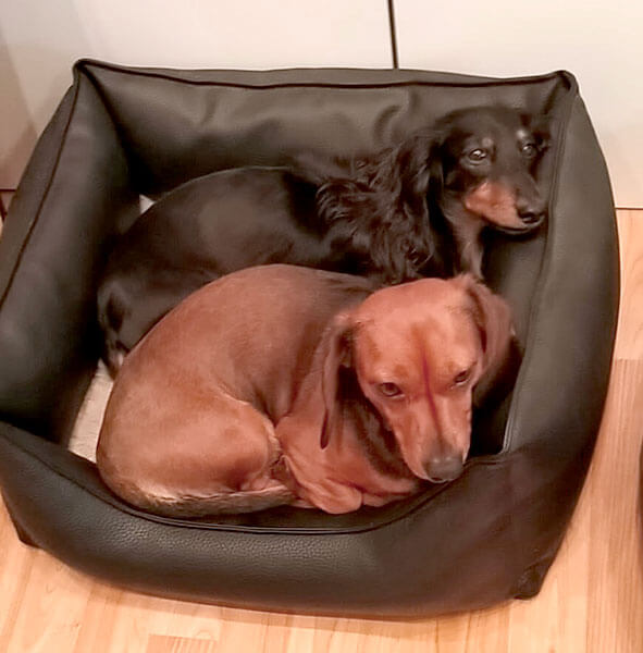 Sie und ihr „Adoptivsohn“ Emil sind nach wie vor ein Herz und eine Seele. Meistens liegen sie zusammen in einem Körbchen (quetschen sich gemeinsam in ein kleines und das große, das direkt daneben steht, bleibt leer) und Emil bekommt noch jeden Abend seine Ohrschleckerchen von ihr. Auch ist Mirinda diejenige, die in der Regel zum Spiel auffordert. Na ja, und dass inzwischen das abendliche Spielstündchen mit uns erwartet wird, daran sind wir ja selbst schuld 😉 .