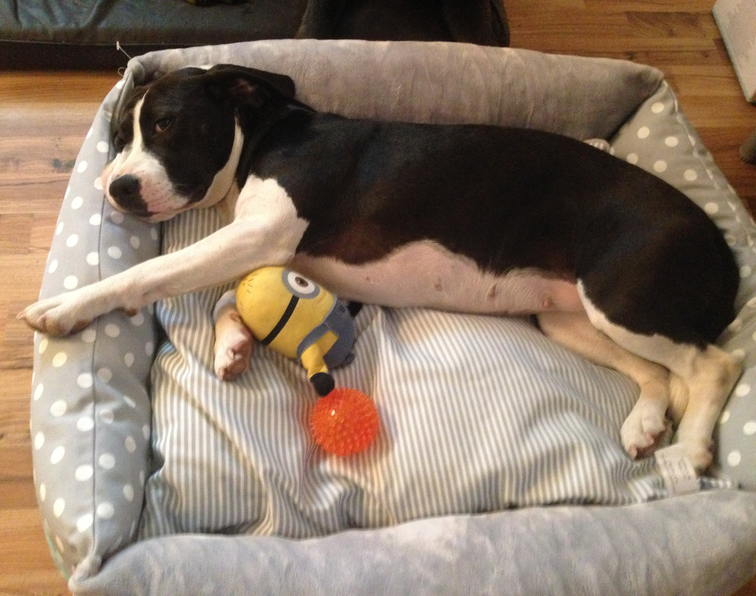 Molly (vormals Nessy) ist jetzt 4 Wochen bei uns und es geht Ihr hervorragend. Am liebsten liegt sie den ganzen Tag auf der Couch und im Bett. Sie ist sehr lernfreudig und kann auch schon einige Tricks. Beim spazieren gehen kann sie auch schon ohne Leine gehen, wenn ich sie rufe kommt sie sofort zurück. Sie liebt einfach jeden und jeder liebt sie.