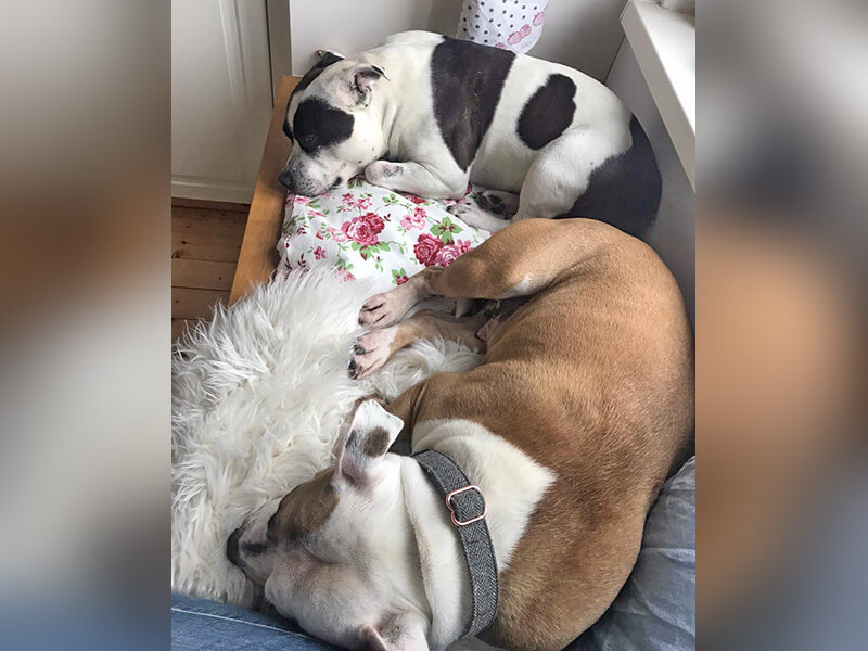 Schlafen gemeinsam im Bett bei uns 😀 Sie werden langsam Freunde.