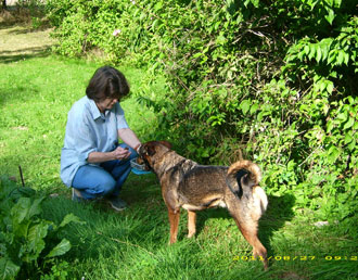 Der Kontakt mit Fremden macht sie zwar nochziemlich nervös, aber auch das wird langsam besser.Wir möchten uns jedenfalls nochmals für die Vermittlung dieser reizenden und äußerst sanftmütigen und gelehrigen kleinen Hündin, sowie für Ihren großartigen persönlichen Einsatz zur Rettung der armen Tiere ganz herzlich bedanken!