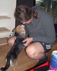 Anfangs sehr schüchtern und zurückhaltend, aß sie 1 Woche lang kaum was und der Tierarztbesuch blieb uns leider nicht erspart (jetzt wissen wir auch, dass sie Spritzen absolut nicht mag). Langsam gliederte sie sich in unsere kleine Familie bestehend aus zwei Katzen und zwei Schlangen ein. Nun möchte sie den ganzen Tag die volle Aufmerksamkeit haben und jagt ab und zu unsere weibliche Katze durch die Wohnung. Leider schafft sie es noch nicht ganz stubenrein zu sein, aber dieses Problem werden wir noch aus der Welt schaffen, da wir mit ihr einige Trainingsstunden bei einer Hundetrainerin machen wollen.