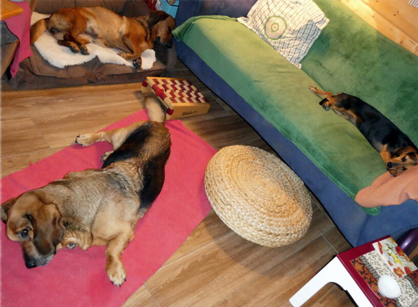 Auf den Photos sind außerdem noch die kleine Fee "Flora" zu sehen, die wir schon ein Jahr zuvor von Euch adoptiert haben, sowie unser Basset-Mix "Cooper" (heiliger Coopernikus!), der ein bisschen Ruhe in diese Übermacht an Weibsvolk bringt :-)