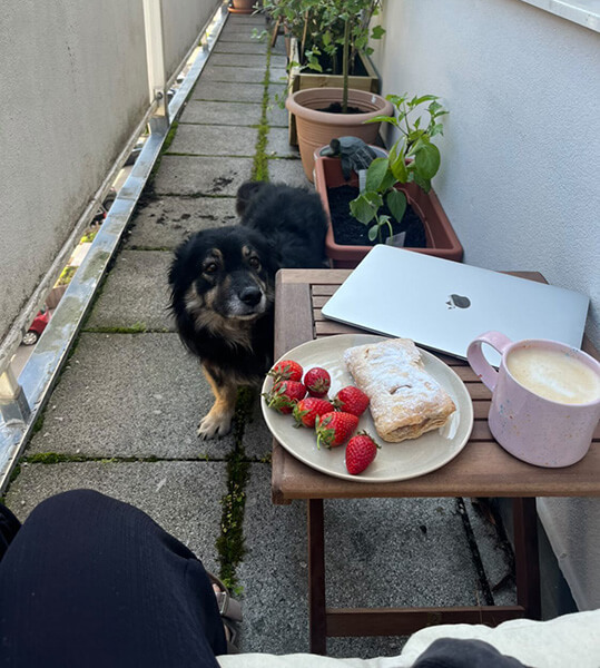 Sie hat sich super gut eingelebt. Nana kommt jeden Tag mit zur Arbeit und möchte am liebsten keine Sekunde von meiner Seite weichen.
