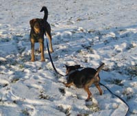 Zwanzigmeterleine aus und läuft auch schon frei (mit der Laufleine) kommt auf Zuruf und wird immer freundlicher. Wir merken immer mehr, dass Sie ein ganz freundlicher Hund ist und freuen uns darauf, wenn sie frei laufen kann.