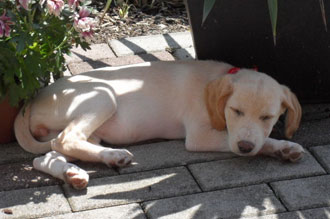 Sie wiegt nun 4,4kg und hat eine Schulterhöhe von ca. 32cm.