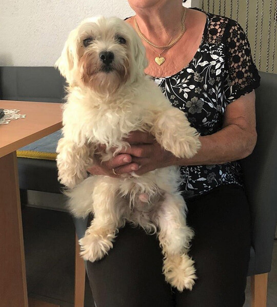 Nelson fühlt sich sehr wohl und ist sehr brav.