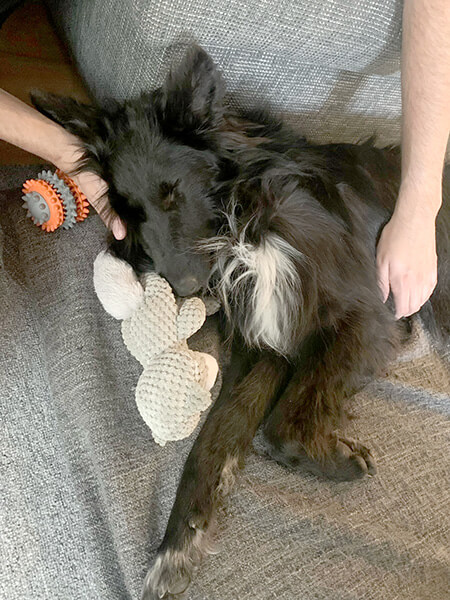 Ich fühle mich seit den ersten Momenten wohl. Die Autofahrt habe ich ohne Probleme mit Zwischenstopp und Gassirunde auf einem Feld gemeistert. Beim Spazieren im Wald gehe ich ganz brav an der Leine und genieße die Bewegung in der Natur.