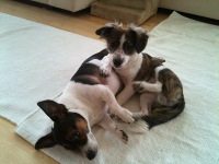 Der damals 10 Wochen alte Hundebub hat sich, dank Ersatzmama Jeanny, schnell bei uns eingelebt. Alles was Jeanny vormachte, wurde übernommen und mutig nachgemacht ... Hauptsache Jeanny war da - dann war alles gut!