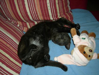 Danke für Ihr Mail. Dem Kleinen geht es sehr gut! Wir haben ihn umbenannt auf Nicodemus (Nico). Er wiegt jetzt 3 kg und sein Fell verändert sich, er bekommt immer mehr weiße Haare, v.a. am Bauch und an der Brust. Weiß man, welche Rasse er genau ist?