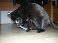 Nico ist sehr verspielt und hält uns auf Trab. Auf dem Kratzbaum fühlt er sich sehr wohl und um jedes Leckerli wird gekämpft :-)