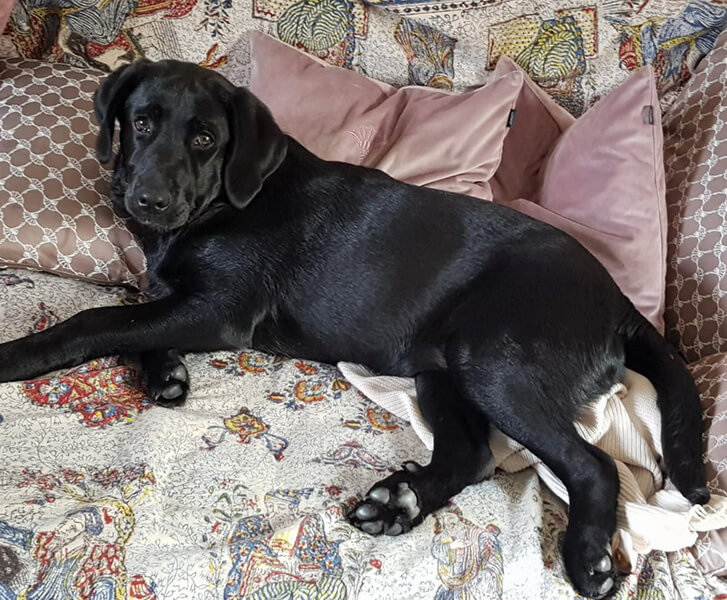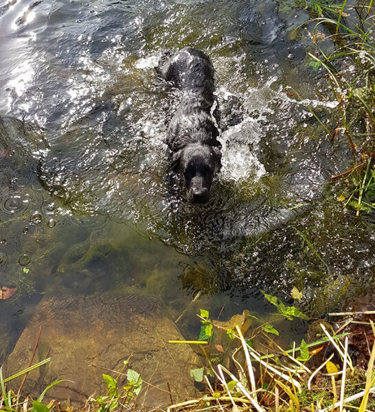 Den großen Gartenteich (nebst mehreren kleineren) hat sie mittlerweile auch schon entdeckt. Sie findet das Menschensofa eindeutig besser als das Hundesofa. Enten und Hühnern nachlaufen macht ihr Spaß und sie versteht nicht, weshalb sie das nicht darf.