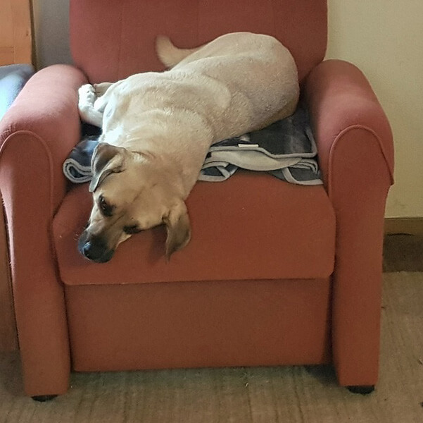 An unseren und der anderen Hunde Tagesrhytmus hat er sich gewöhnt. Seine Schüchternheit hat er schnell abgelegt, er bewegt sich unbefangen auf dem gesamten Grundstück und hat einen guten Wachtrieb entwickelt. Allerdings klebt er bei meiner Gattin, egal wohin sie geht, praktisch an den Fersen und schläft sogar neben ihrem Bett. Wenn wir uns aufmachen zum Wegfahren - Einkaufen oder ähnliches - wird er nervös, läuft aufgeregt hin und her und bellt auch, obwohl er nie allein ist. Wenn wir nicht zu Hause sind, ist Lenny und Emma ständig bei ihm.