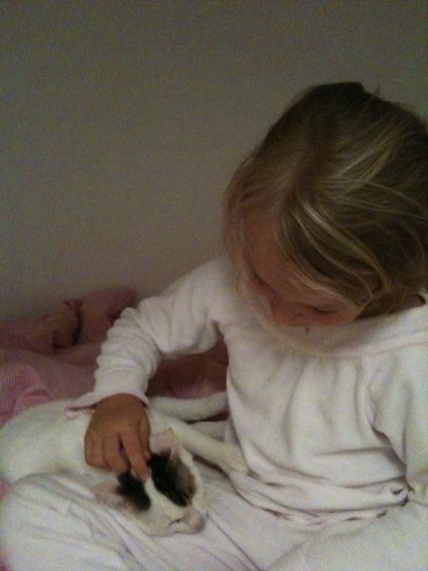 diese beiden sind nach einer Woche Herzensfreunde - die Katze schläft jetzt auch in der Nacht laut schnurrend an Mia gekuschelt, tagsüber rollt sich Ninni in Mias Bett ein. Mit Kater Benjamin gibt es sehr wilde (aber freundschaftliche) Jagden durch die Wohnung.