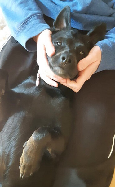 Die Grundkommandos konnten wir ihm schon lernen, somit können wir ihn streckenweise auf ruhigen Plätzen ohne Leine laufen lassen. Sein Tagesablauf besteht aus Fressen, Spazierengehen, Schlafen, Schmusen und Spielen.