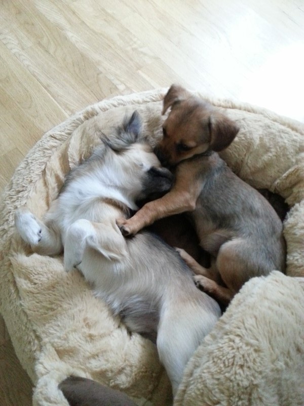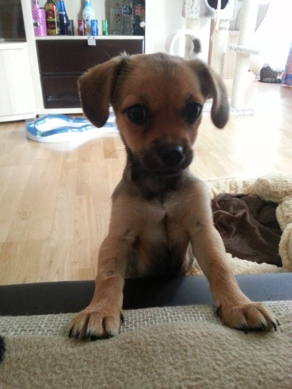 Nach 4stündiger Autofahrt hab ich endlich mein 'Zuhause für immer' gefunden. Ich lebe hier mit 2 Katzen, sowie einem Hund (stellt euch vor, der ist jetzt sogar schon kleiner als ich *hihi*). Meine neue Mami und mein Papi sind ganz vernarrt in mich, so vernarrt, dass wir im Namen meiner Gesundheit sogar täglich beim Tierarzt auf der Matte standen (ja, ja gut ging es mir nicht). Doch jetzt bin ich gesundet und es geht mir toll (verfressen bin ich ohne Ende, dennoch, auch durch mein stetiges Wachstum, nur ein Strich in der Landschaft *traurig*). Angst hab ich ja zum Glück vor "Gar nichts" und dieses "Gar nichts" wird auch niiiie verbellt (zur Aufklärung: "Garnichts" sind: alle anderen Hunde, 99% aller anderen Menschen, Figuren, Spiegel,....). Ganz oft fahren wir auch in den Garten zu Oma, Opa und den Riesen (2 große Hunde). Dort ist es richtig toll. Laufen ohne Leine, große Hunde anbrummen und verjagen *hihi*. Aja und zu guter Letzt: 'Sitz' kann ich schon (vor Allem wenns Fressi gibt), Springen wie ein Hecht ebenso (auf den Teller, was Mami komischerweise gar nicht so toll findet), weinen/quietschen kann ich auch (Mami schiebt dann immer gleich Panik ... warum auch immer ...*hihi* und knuddelt mich dann ganz lieb). Mein Hundefreund, Gismo, ist mein aller, allerliebster Schatz! Er teilt sich sogar mit mir Mamis Polster (die kann ja auch mit dem Papi am Boden schlafen *muhaha*) Sooo, puh, ich glaub das war jetzt das Wichtigste zu meinem kleinen ICH ;)