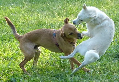 seit etwas mehr als drei Monaten ist Paul nun bei uns. Wir alle haben ihn sehr ins Herz geschlossen. Er ist nicht kaum mehr wieder zu  erkennen. Seine Ängstlichkeit vor Menschen, wenn genügend Sicherheitsabstand gelassen wird, ist schon weitgehend verschwunden - innerhalb der Familie ist er  sehr fröhlich und anhänglich geworden.  Emily, die Hündin unserer Tochter, ist seine beste Freundin. Die beiden sind  sich sehr einig beim Bellen, beim Betteln nach Leckerlis, beim Spielen,  ... besonders gerne toben sie in der Hundezone herum. Anbei schicke ich Ihnen einige Bilder. Es gibt schon noch viel zu lernen, aber Paul hat schon sehr viel geschafft und ist auf dem besten Weg. Leider verträgt er Autofahrten bis jetzt überhaupt nicht, das erschwert Ausflüge, aber vielleicht wird´s ja noch.