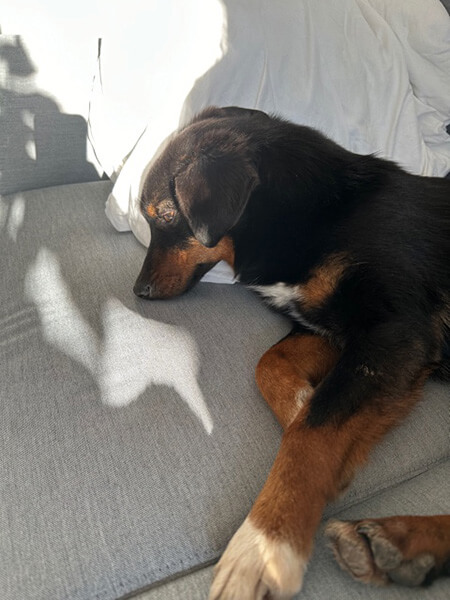 Peggy-Sue hat sich einfach fantastisch bei mir eingelebt! Die Heimfahrt war unkompliziert und entspannt und Peggy hat auf meinem Schoß friedlich geschlafen. Auch das Futter hat sie gleich angenommen und bis auf ein allererstes Hoppala, das ja nur zu verständlich ist bei all der Aufregung, fühlt es sich so an, als wäre sie schon immer hier gewesen.